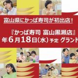 コロワイドグループのかっぱ寿司(カッパ・クリエイト㈱ 本社:神奈川県横浜市、代表取締役社長:山角豪)は、2025年6月18日(水)《予定》 に『かっぱ寿司 富山黒瀬店』をオープンいたします。