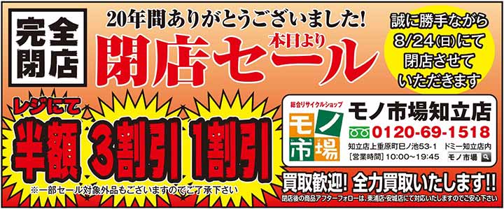 これまでの感謝を込めて、閉店セールを開催させていただきますので、