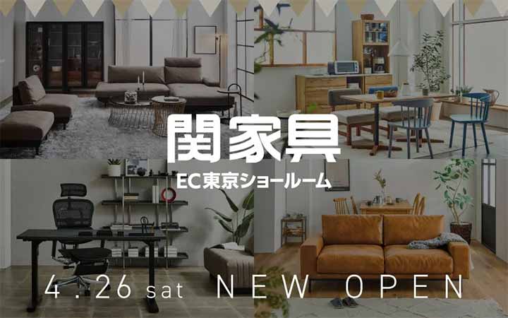 株式会社関家具(福岡県大川市、代表取締役社長:春田 秀樹、以下関家具)は、関家具初のオンラインショップ専用ショールーム「関家具 EC東京ショールーム」を4月26日(土)東京都品川区西五反田にオープンします。